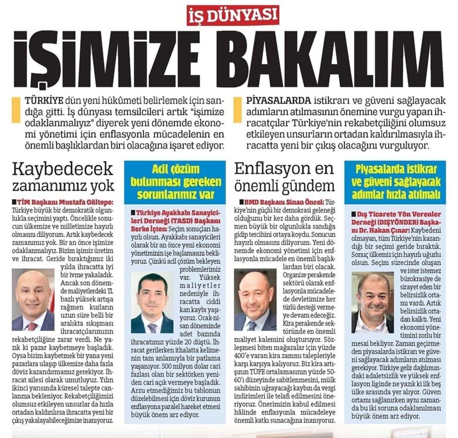 Seçimin ardından değerlendirmelerde bulunan TİM Başkanı Mustafa Gültepe, “Türkiye büyük bir olgunlukla bir süreç yaşıyor. Bu noktada bizler işimize odaklanıp ihracatımızı daha da büyütmek için çalışacağız” dedi.