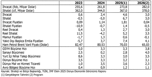 İhracatın, 2025 sonunda 273,8 milyar dolar seviyesinde gerçekleşeceği, gelecek yıl 282 milyar dolara yükseleceği öngörüldü.
