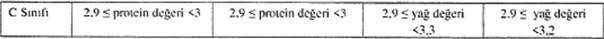 Buna göre, C sınıfı sütün protein değeri 2,9 ile 3 arasında, yağ değeri ise 2,9 ile 3,2 arasında olacak.