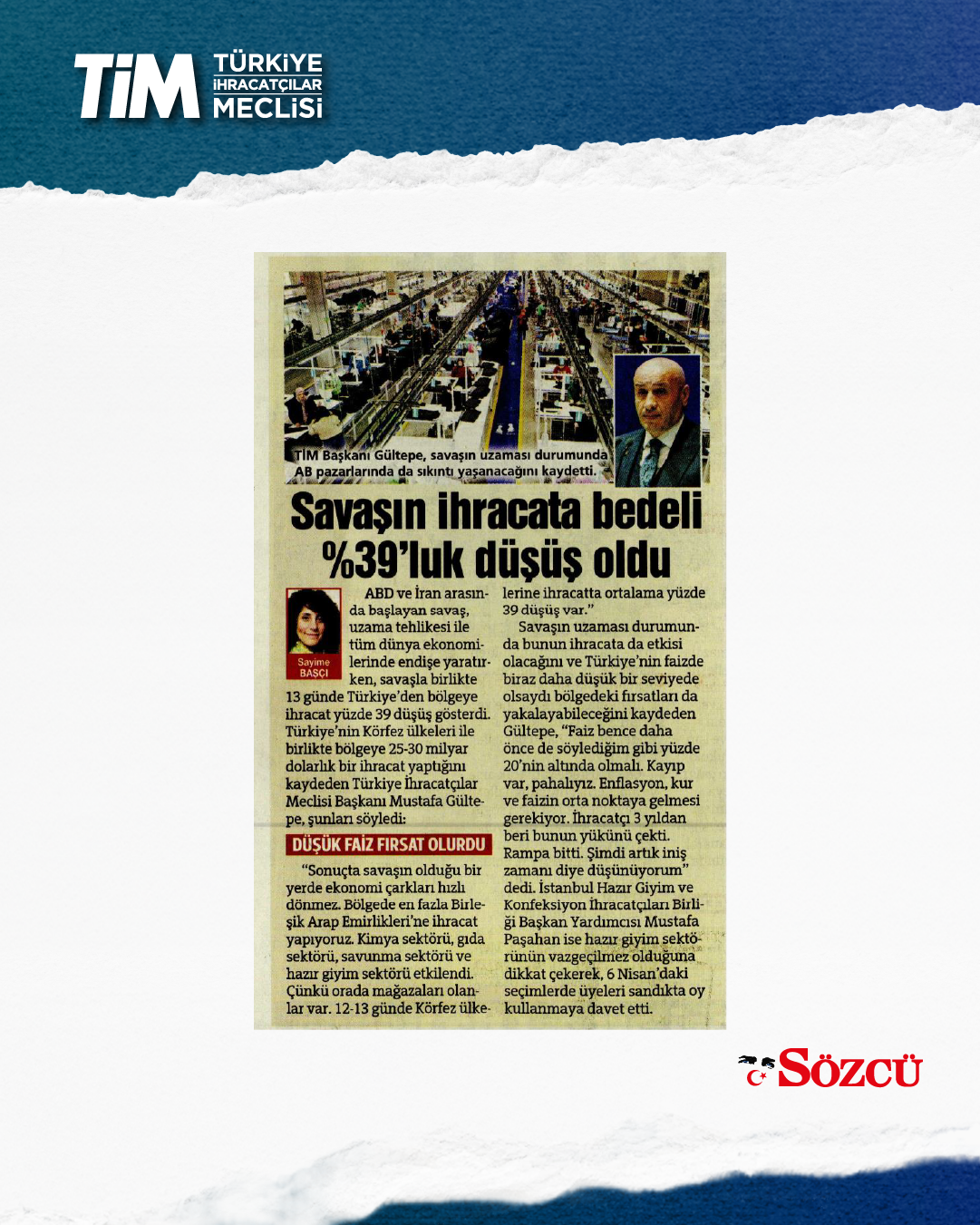 TİM BAŞKANI MUSTAFA GÜLTEPE: TÜRKİYE HAZIR GİYİM SEKTÖRÜNDEN VAZGEÇEMEZ