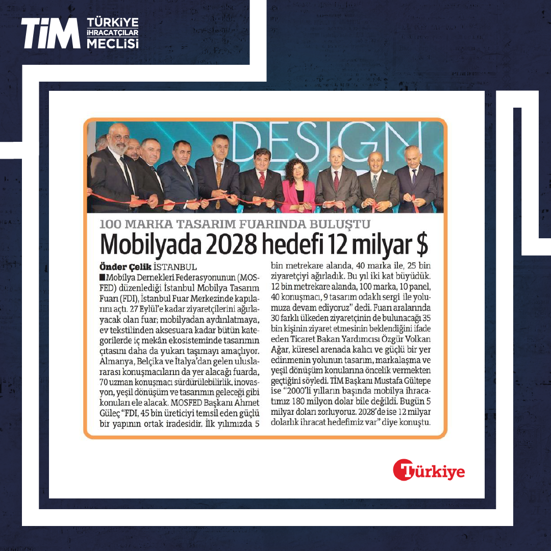 TİM BAŞKANI MUSTAFA GÜLTEPE: MOBİLYADA İHRACAT HEDEFİ 12 MİLYAR DOLAR