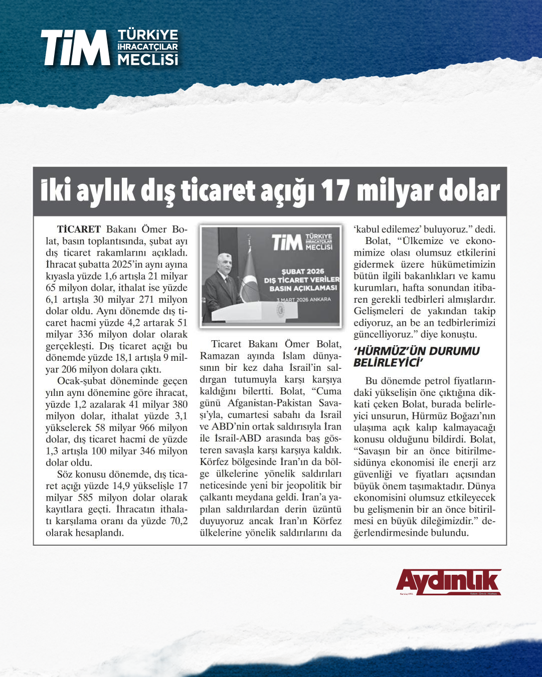Şubat 2026 Dış Ticaret Verileri Açıklaması - 4 Mart 2026