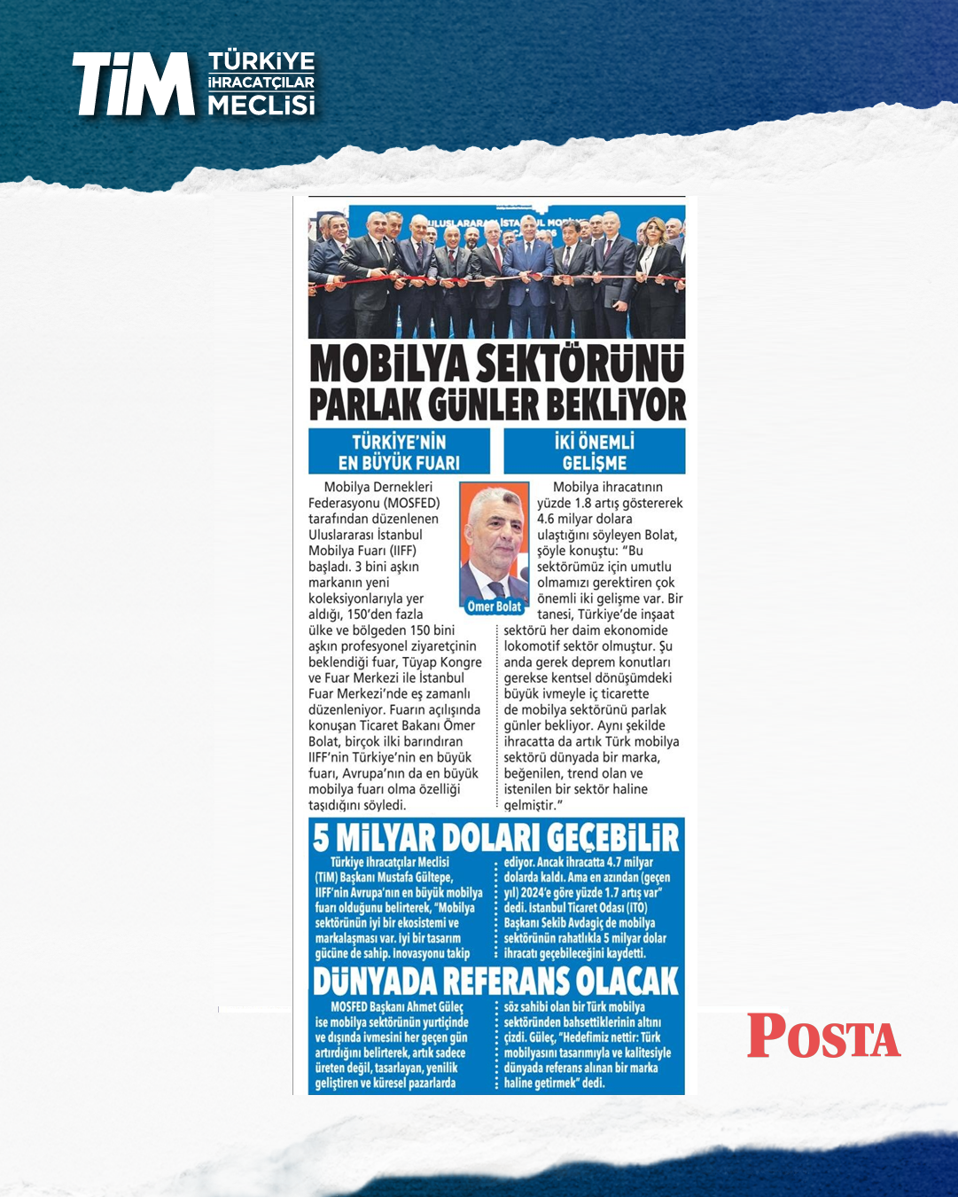 TİM BAŞKANI MUSTAFA GÜLTEPE: MOBİLYA SEKTÖRÜNDE İYİ BİR MARKALAŞMA VAR