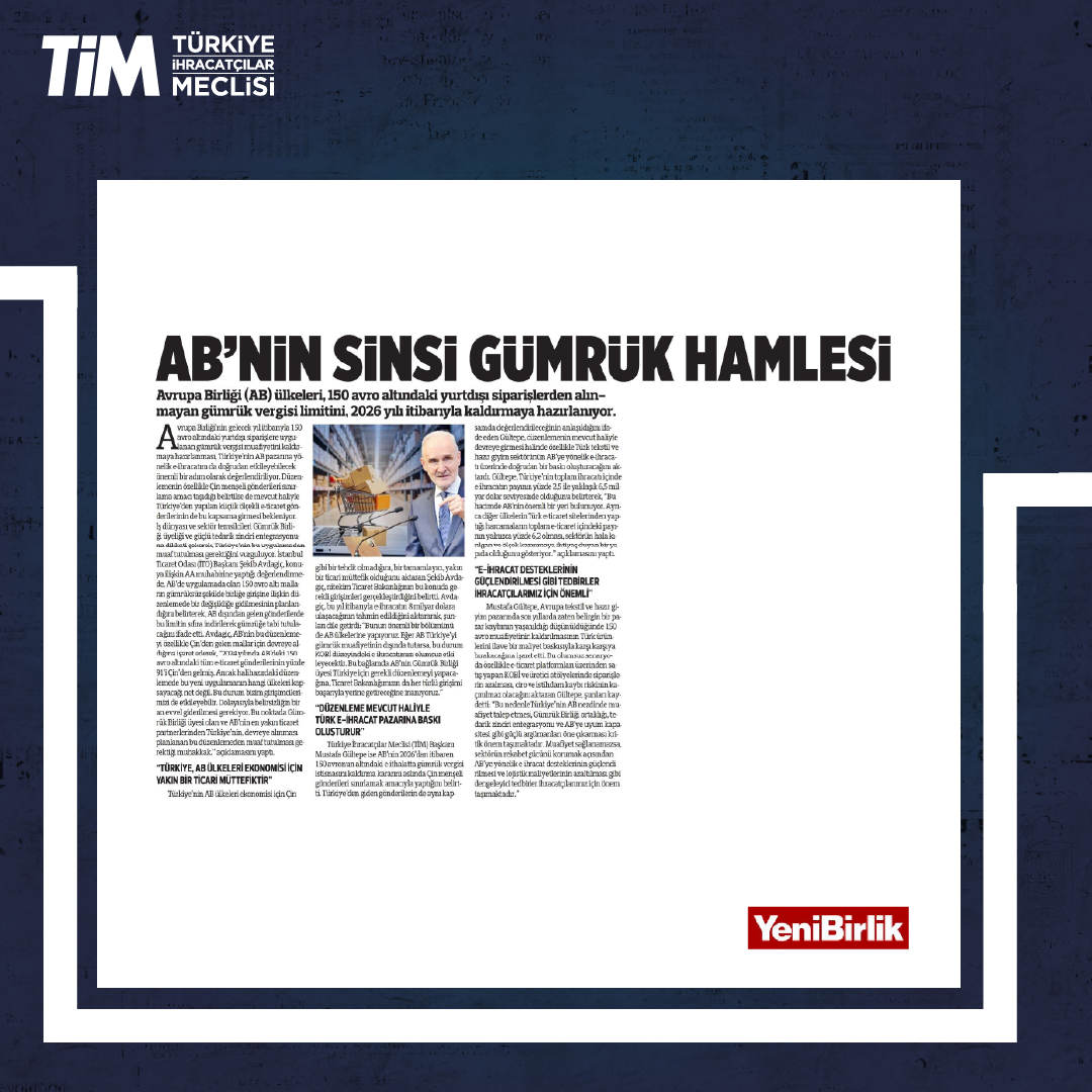 TİM BAŞKANI MUSTAFA GÜLTEPE: AB'NİN GÜMRÜK VERGİSİ LİMİTİNDE MUAFİYET SAĞLANAMAZSA DENGELEYİCİ TEDBİRLER ALMAK GEREKİYOR