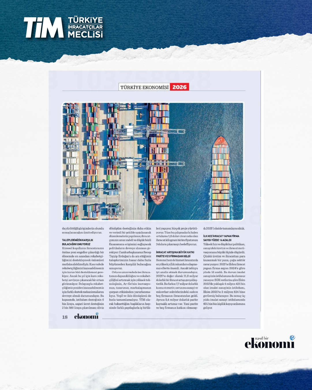 TİM Başkanı Mustafa Gültepe, ihracat gündemine ilişkin Nasıl Bir Ekonomi'ye değerlendirmelerde bulundu. Yüksek faiz ve düşük kur politikasının, sanayideki üretim ve ihracat motivasyonunu büyük ölçüde düşürdüğünü belirten Gültepe, AB'nin Mercosur ve Hindistan ile imzaladığı anlaşmaların rekabet baskısını daha da artırdığına dikkat çekti. Gültepe, “Üretim ve ihracatı yeniden büyümenin lokomotifi yapmak istiyorsak en azından rekabetçiliğimizi destekleyecek önlemleri mutlaka alabilmeliyiz.” dedi.